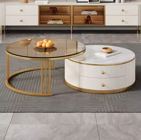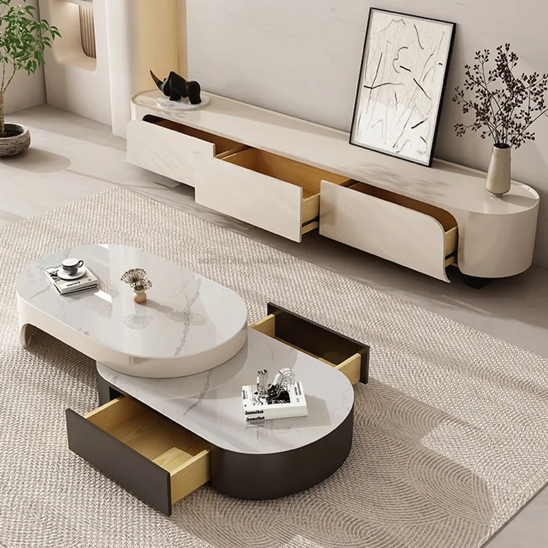 AOMISI CASA TV Stand Cetre Table Living Room Coffee Center Table Wooden Cabinet White Marble Tv Stand and Coffee Table